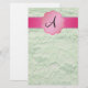 Monogram green lace stationery