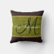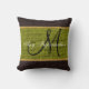 Monogram Green Rustic Burlap Jute Throw Pillow