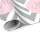 Monogram grey and white chevron pattern with pastel pink accent wrapping paper. Grey and white zigzag and in the middle there is a quatrefoil shape with your custom initial.