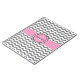 Modern and trendy monogrammed chevron stripes spiral notebook features grey and white chevron stripes and a pink accent ribbon stitched border with a round pink accent frame outlined in black and white for your initial and name. Show your personality with this fun and trendy chevron stripe spiral notebook. Perfect for a journal, taking notes, work, school and home. Makes a great gift for all occasions. Click the "Customize it!" button to change the text size, text colour, font style and more! Please note: the pink accent horizontal ribbon stitch frame border is solid pink with a ribbon stitch appearance.