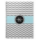 Modern and trendy monogrammed chevron stripes spiral notebook features grey and white chevron stripes and a light turquoise blue accent border with a round black accent frame outlined in black and white for your initial and name. Show your personality with this fun and trendy chevron stripe spiral notebook. Perfect for a journal, taking notes, work, school and home. Makes a great gift for all occasions. Click the "Customize it!" button to change the text size, text colour, font style and more! Please note: the pink accent horizontal ribbon stitch frame border is solid pink with a ribbon stitch appearance.