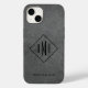 Grey faux leather background highlights your monogram in a black diamond frame and your full name at the bottom. Create for yourself or give as a gift.