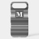 Irregular horizontal stripes in different shades of grey with a customizable monogram.