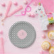 Monogram Grey, White and Pastel Pink Polka Dot Paper Plate