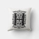 Monogram H Initial Black and White Floral Pattern Throw Pillow