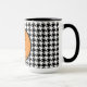 Perfect October gift for the boss. A classic black and white houndstooth pattern with an orange oval frame, large modern initial and text. This is an 15oz. combo colour beverage mug, also available in 11oz. size. Choose from 5 colours for handle and inside. Easily change initial and text using the Template provided. The little witch on a broom can also be removed using the Design Tool to use the mug year-round. See "About This Product" at side for more information.