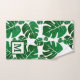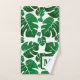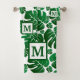 Tropical monogram bath towels. Green and white tropical Monstera Plant palm Leaves with monogram bath towel set.