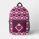 Monogram Heart Checkerboard Pattern Bordeaux Pink Printed Backpack