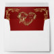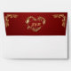 This design features a gold scroll heart on a ruby red background on the inside flap, borders on front with heart monogram on back flap.