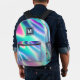 Own your style with our Customizable holographic/ iridescent backpack. Bursting with vibrant colours, this backpack is a bold statement in individuality. Personalize it with your letter for a unique touch!
