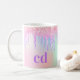 Monogram holographic unicorn glitter drip rainbow coffee mug