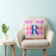 Monogram Hot Pink Bright Orange Retro Flower Throw Pillow