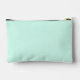 Pretty monogram accessory pouch for hummingbird lovers featuring a watercolor wreath of hummingbirds and botanical branches on a light blue background. All hummingbird images are taken from original watercolors by C. Dobbins.