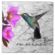 MONOGRAM HUMMINGBIRD----ON WHITE MARBLE LOOK BACKGROUND.--YOU CAN CHANGE BACKGROUND TO ANY COLOR OR DESIGN, CHANGE TEXT USE ANY FONT AND FONT COLOR.-----SMALL TILE MAKES A GREAT DRINK COASTER.