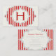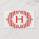 Monogram in a frame and red, white stripes eye catching business cards, featuring your monogram in an elegant and classy ivory frame with grey outline. There is another frame under it with a striped pattern in red, white. This stylish, girly design is modern with a retro/vintage flair. The Parisian font is used for your text. It is completely customizable and you can customize it and add your text, name or initials. You can change background colour - red- choosing from the Zazzle colour chart. This sophisticated personalized business card design is perfect for personal or professional use.