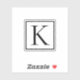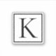 You can customize this sticker with your initial. Coloured in black text with a black bordered square.