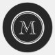 Monogram Initial Black High End Coloured Classic Round Sticker