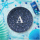 Monogram Initial Blue Glitter White Custom Name Paper Plate