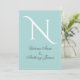 Robin egg blue background with a fresh white monogram. The bride and groom names on the front. Invite typography on the reverse of this beautiful invitation is also in a matching script. Just gorgeous. 100% customer satisfaction guaranteed with “Zazzle”.