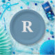 Monogram Initial Dusty Blue White Custom Colours Paper Plate