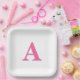 Monogram Initial Elegant Custom Name Pink White Paper Plate
