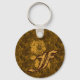 Monogram Initial F Gold Peony Flower Keychain