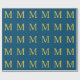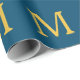 Monogram Initial Gold Blue Custom Name 2023 Wrapping Paper