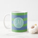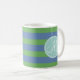 Monogram Initial Green Periwinkle Striped Pattern Coffee Mug
