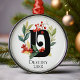 An elegant monogram initial Letter D with a Christmas Berry Wreath and a place to personalize with Name and year.