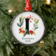 Monogram Initial Letter I Berry Wreath Christmas Metal Ornament