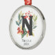 Monogram Initial Letter N Berry Wreath Christmas Metal Ornament