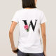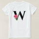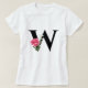 Monogram Initial Letter W in Black with Pink Rose T-Shirt