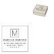 Elegant return address rubber stamp featuring your monogram initial with name and address below. Modern, minimal style