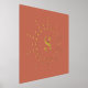 Poster featuring your monogram initial in gold or silver foil inside a border of radial dots resembling a sun on a terracotta or custom colour background.