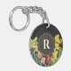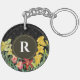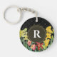 Monogram Initial Spring Flowers Damask Background Keychain