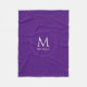 Monogram Initial Template Royal Purple Custom Fleece Blanket