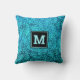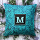 A turquoise and blue ombre leaf foliage damask pattern on a rich, deep turquoise textured background adorns this modern, trendy and girly monogramed throw pillow. Customize this elegant throw pillow with your monogram initial. Makes a fun and stylish statement every time you relax with it. Also a great gift for a special friend!