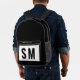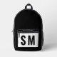 Certainly! This printed backpack, designed in a modern and elegant black and white colour scheme, showcases initials for a sleek and personalized touch. Its sophisticated design effortlessly combines modernity and style, making it a fashionable and practical accessory for travel. Embrace a chic and contemporary printed backpack, featuring personalized initials in a timeless black and white palette for a stylish statement piece.