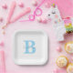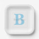 Monogram Initials Blue Custom Name Baby Shower Paper Plate