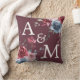 Monogram Initials Dusty Rose Blue Floral Burgundy Throw Pillow