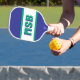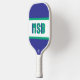 Super fun Custom Pickleball Paddle featuring sporty blue and green stripes. Add your monogram initials to make it unique just to you. Easily change the colours to match your style. Makes the perfect pickleball gift for friends, clients, dad, groomsmen, or YOU!