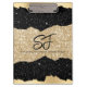 Monogram Initials on Black and Gold Glitter Clipboard