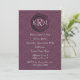 Monogram initials on a plum and black swirl design party invitation for weddings, housewarmings, anniversary, or any event. Fill in your information in the template. You can further personalize this invitation by clicking on Customize and add whatever text you like, as well as change font size, style, and colour. Also add any text you like to the back. If you need help or have any requests, please contact me through Send Message on my homepage.
