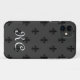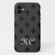 Monogram iPhone 11 case with fleur de lis pattern. Elegant design with classy name initial letters. Personalize it.