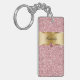 Monogram keychain with pretty printed gold monogram emblem you can personalize with any name, initials, or message and printed pink diamond jewel bling, along with printed pink glitter background you can use as a gift or party favour. Designed as keychains for women or keychains for girls, in a fun two side acrylic design that lets you carry your keys in style.