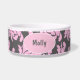 Monogram large dog bowl with pretty pink damask background and a place you can add your dogs name making this a classy pet bowl design. Use yours for a water dish, food dish, or catchall for all your doggy treats.