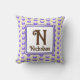 This monogram pillow is a great way to add a colourful accent in your home or create a special keepsake for a wedding or housewarming. A blue polka dot pattern appears against a beige background on both the front and back of this pillow. The letter "N" is featured in a square along with the family name. The letter and your name can quickly and easily be personalized.