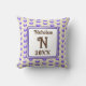 This monogram pillow is a great way to add a colourful accent in your home or create a special keepsake for a wedding or housewarming. A blue polka dot pattern appears against a beige background on both the front and back of this pillow. The letter "N" is featured in a square along with the family name and year. The letter, your name, and year can quickly and easily be personalized.