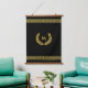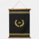 Monogram, Laurel and Golden Greek Pattern on Black Hanging Tapestry
