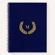 Monogram and laurel on navy blue background Notebook. A golden star on the back side.